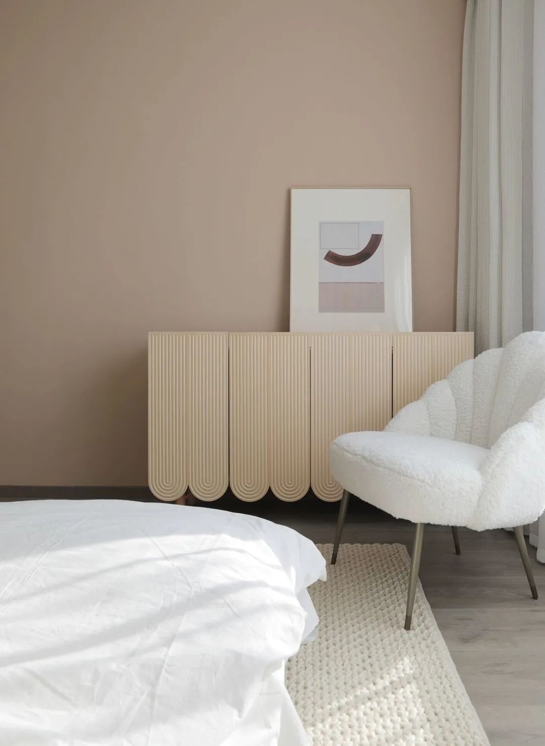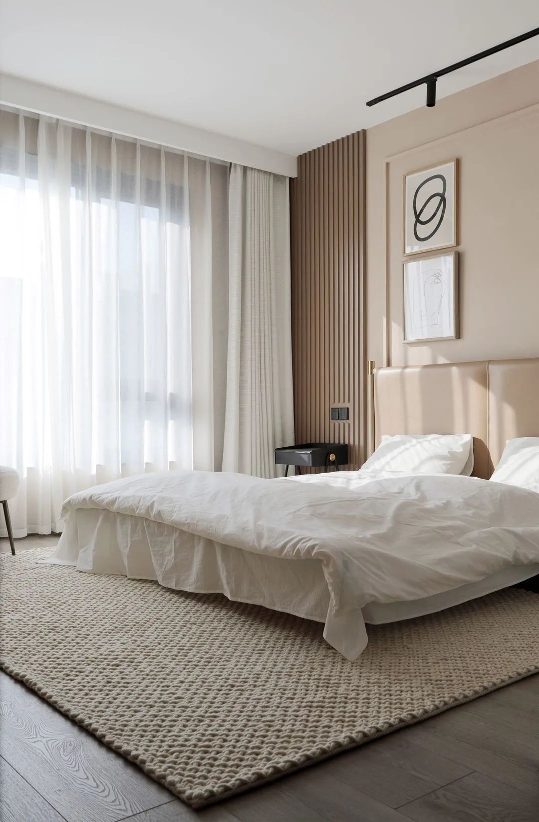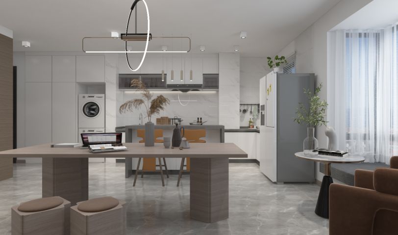 年輕夫妻居住,比較追求設(shè)計感和舒適度。摒棄了常規(guī)沙發(fā)客廳的效果,放了大桌子的效果,男女主人可以在長桌上辦公,也可以陪孩子一起做手工,增添了親子間的樂趣。