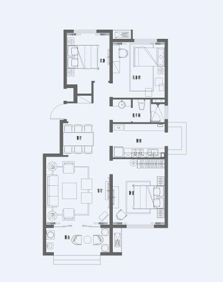 | 案例名稱 | 藍(lán)天碧海之間的烏托邦 | 戶型 | 三居室 | 案例面積 | 140㎡ |