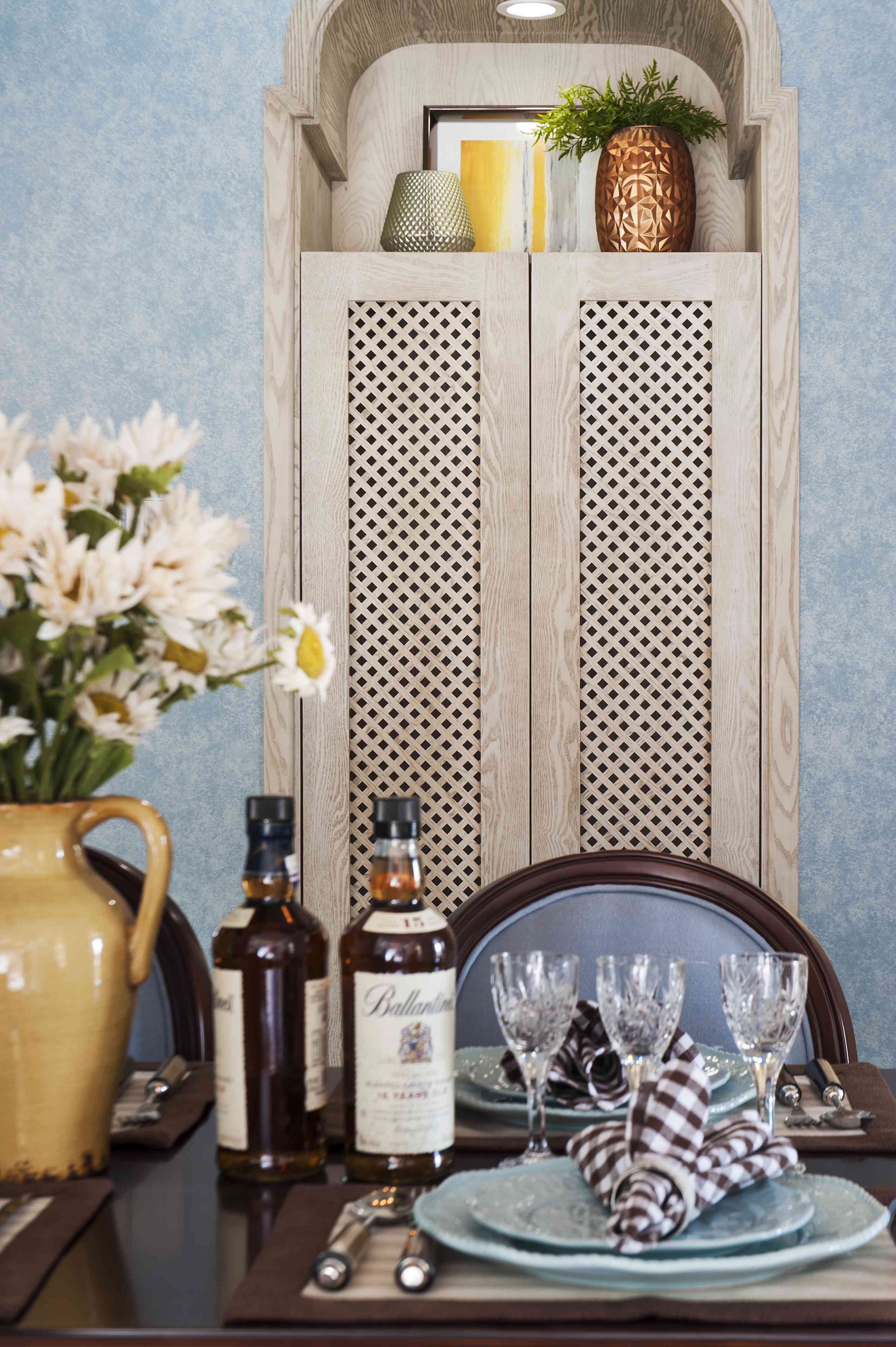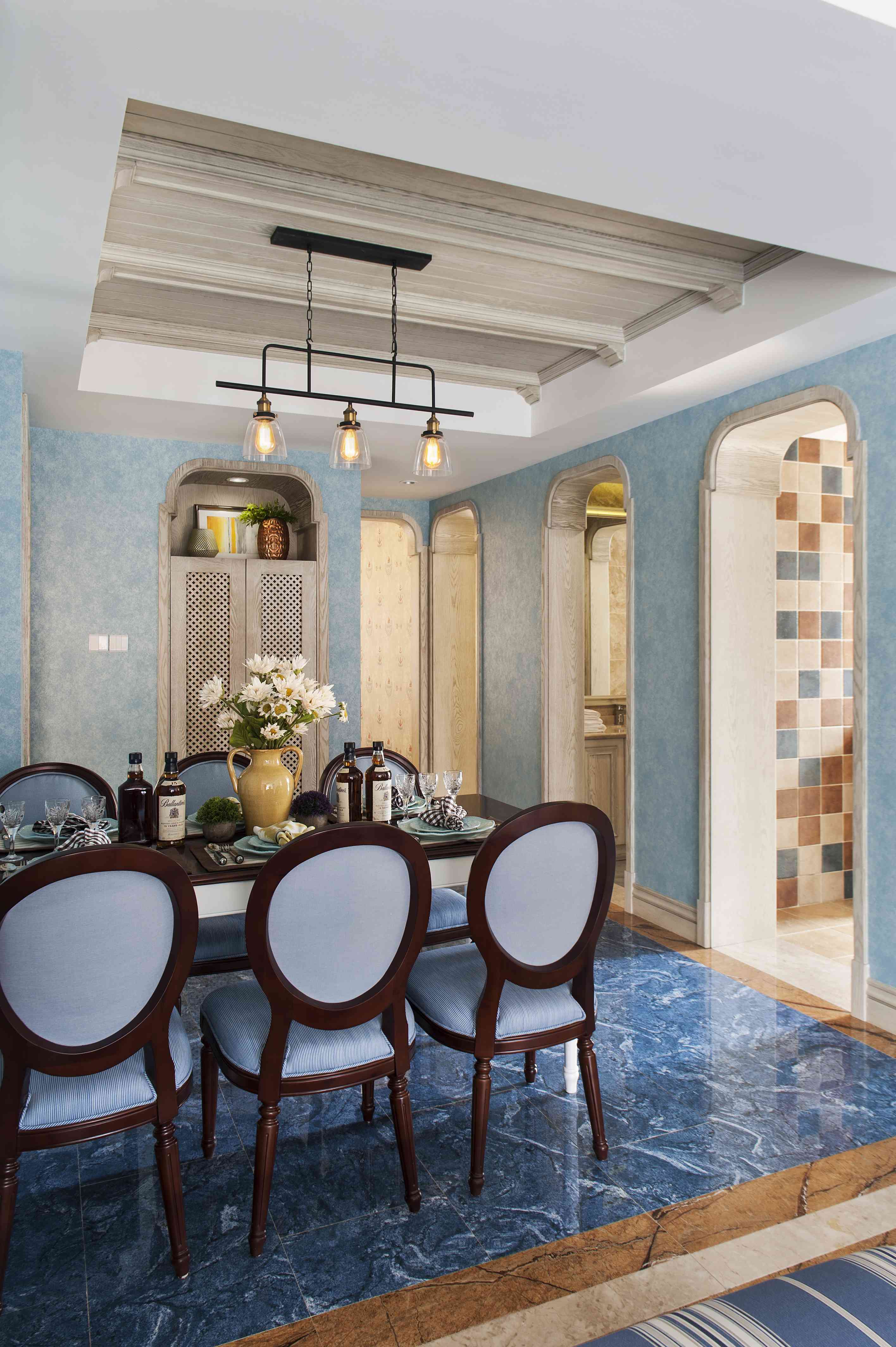 我們在空間設(shè)計(jì)上采用了連續(xù)的拱門和馬蹄門窗來體現(xiàn)空間的通透,并在墻面處采用半穿鑿塑造室內(nèi)的景中窗。一個(gè)原汁原味的地道設(shè)計(jì)還需要處理無處不在的細(xì)節(jié),黃銅制的面包托盤、陶器、銅鍋,古老的木制和銀制餐具。