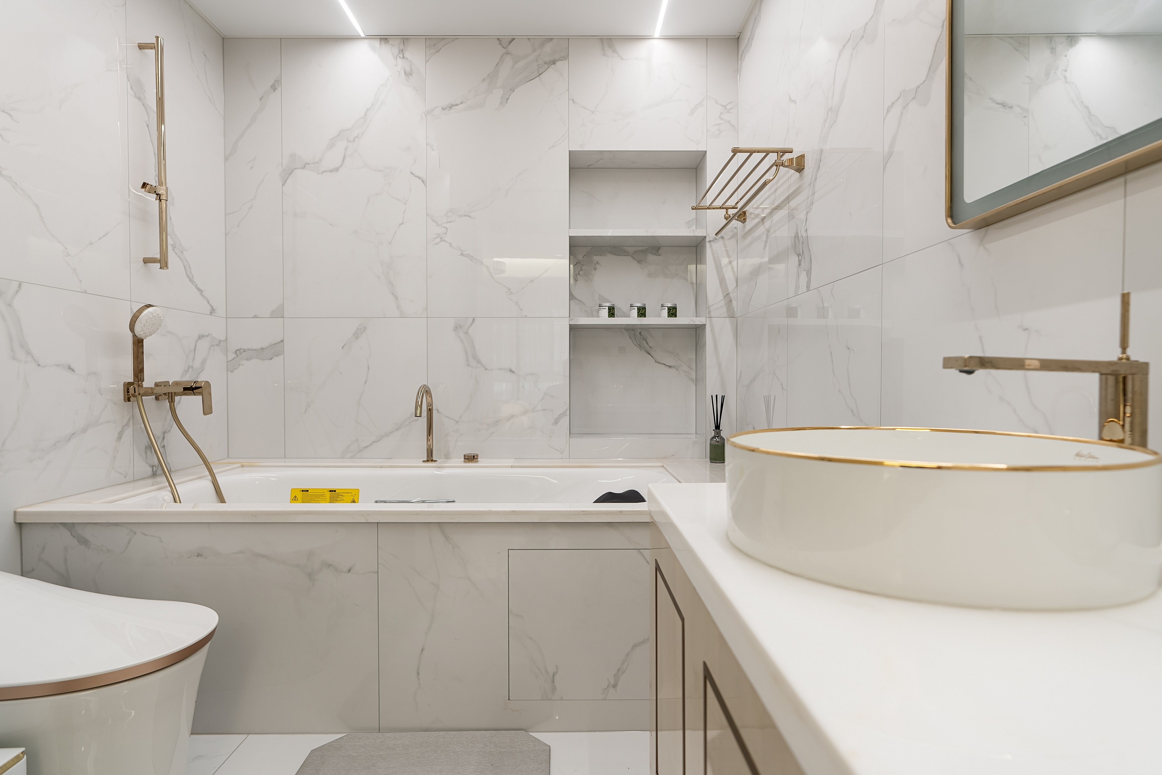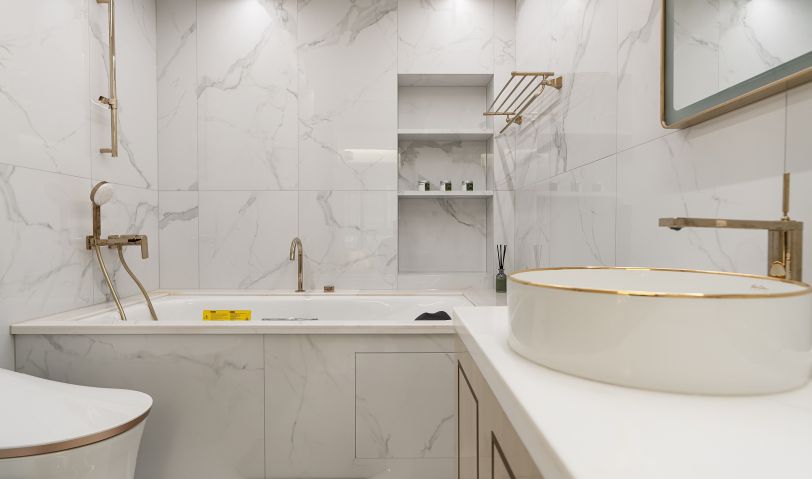 衛(wèi)生間整體采用大理石 白色與金色顏色的碰撞透露出奢華的氣息
