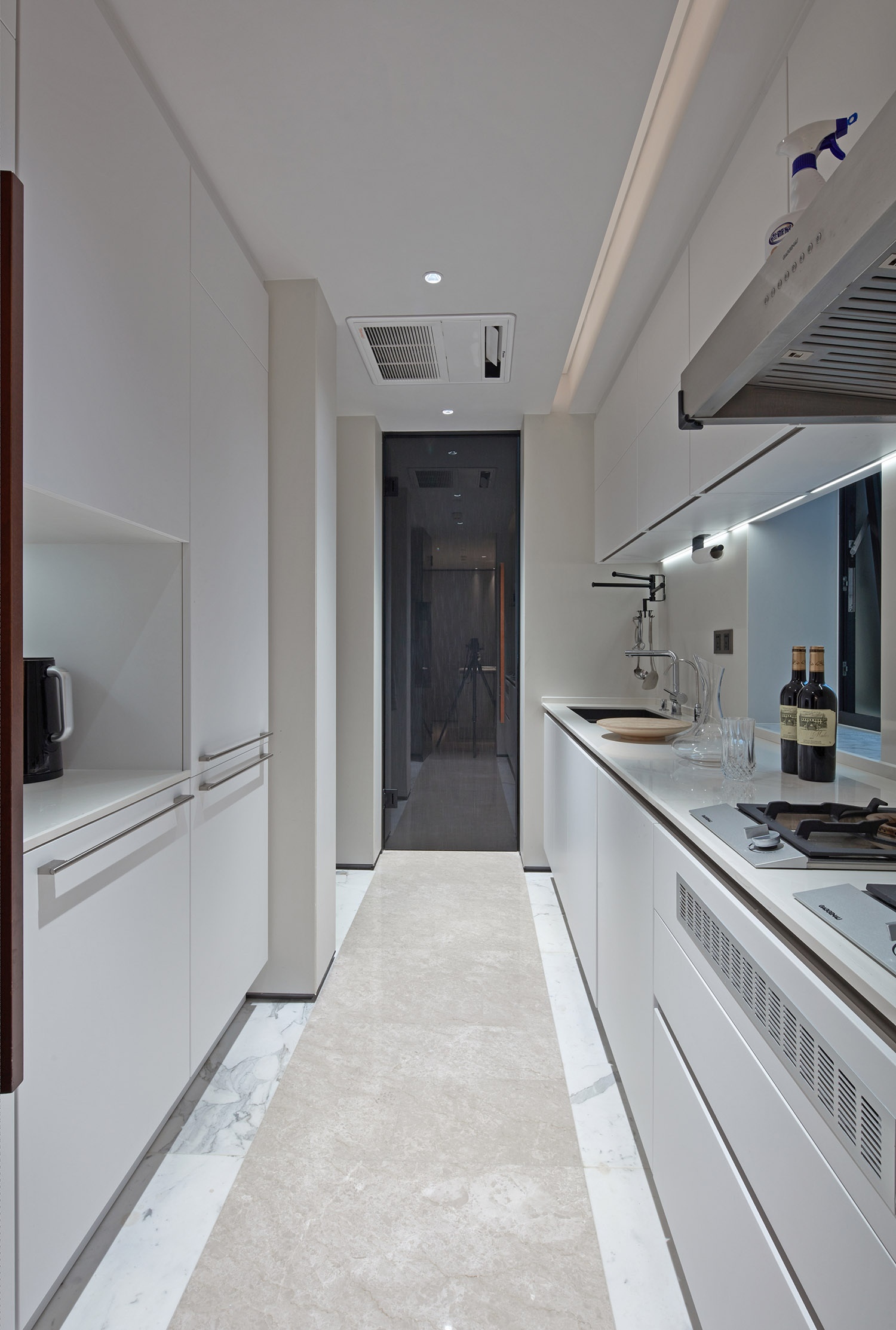 廚房和中島臺有一個連接,動線流暢,這樣不僅做起飯備菜來是很便利,而且讓大家有了更多交流的空間。慢慢烹飪的過程,是等待美好的過程。生活是柴米油鹽醬醋茶,但也是滿懷期待的人間美味。為愛品嘗,心懷溫暖。