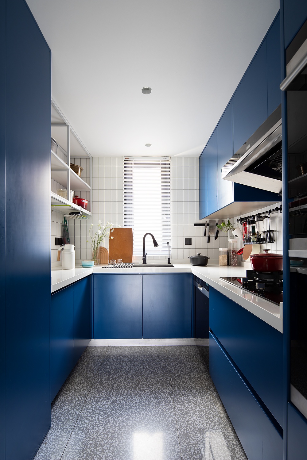每個認真生活的人都值得被認真對待,在克萊因的無盡之藍下,藏著夫妻倆對生活的態(tài)度。在柴米油鹽、把酒言歡,精心準備的每一餐中,去體味那句:人間煙火氣,最撫凡人心。一套LC的琺瑯瓷鍋,色彩氣質(zhì)俱佳,是男業(yè)主漂洋過海從英國輾轉(zhuǎn)至香港再運回深圳。還有廚房烹飪愛好者必備的日本旬刀;當(dāng)美味盛放時,聞到的不僅是食材的香氣,更彌漫著熱愛的味道。
