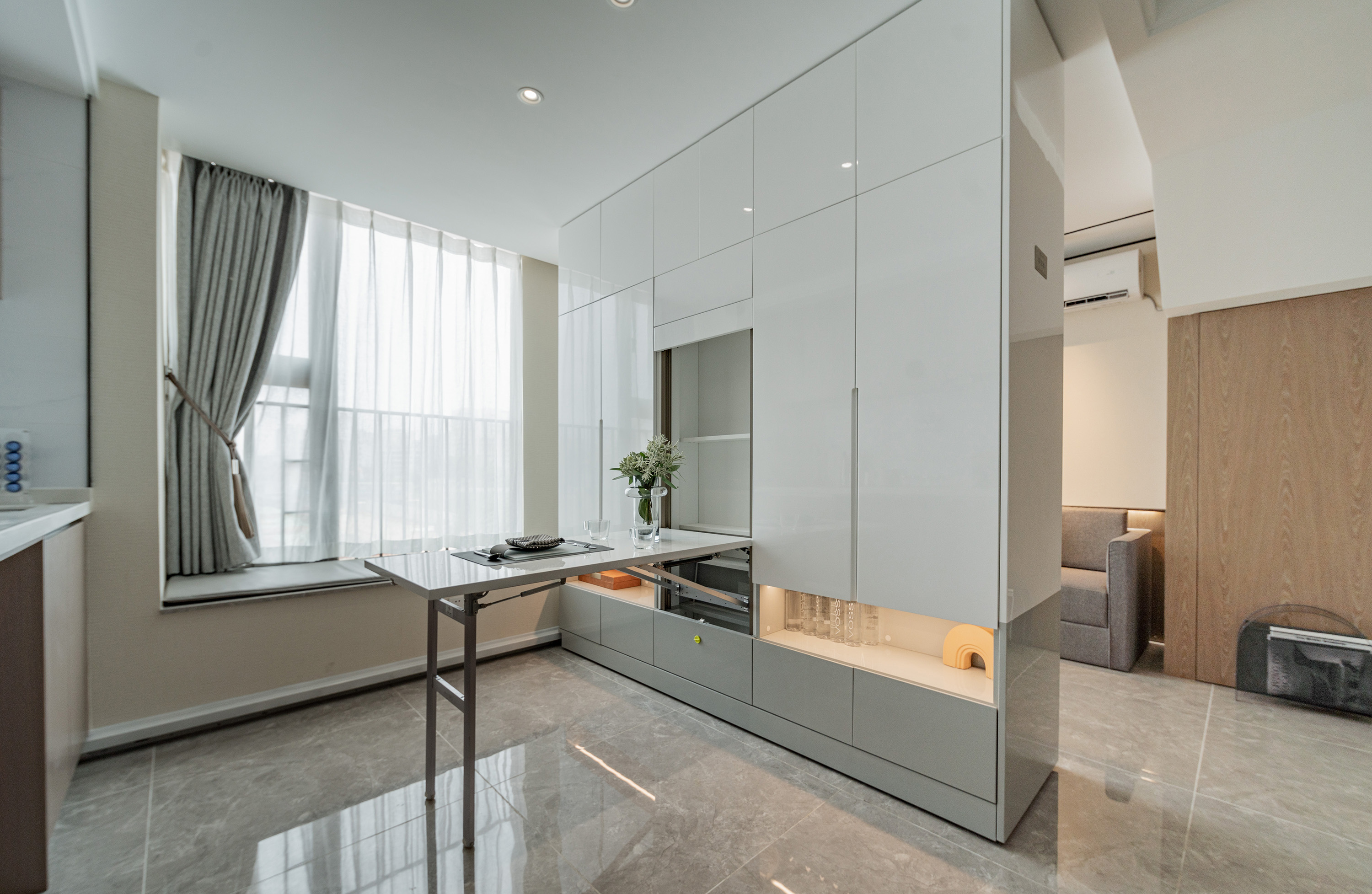 寸金寸土的時(shí)代,隱藏式餐桌充分滿足小戶型家庭對(duì)空間利用的需求。就餐時(shí)打開(kāi),閑置時(shí)則可以折疊起來(lái),方便又節(jié)約空間。
