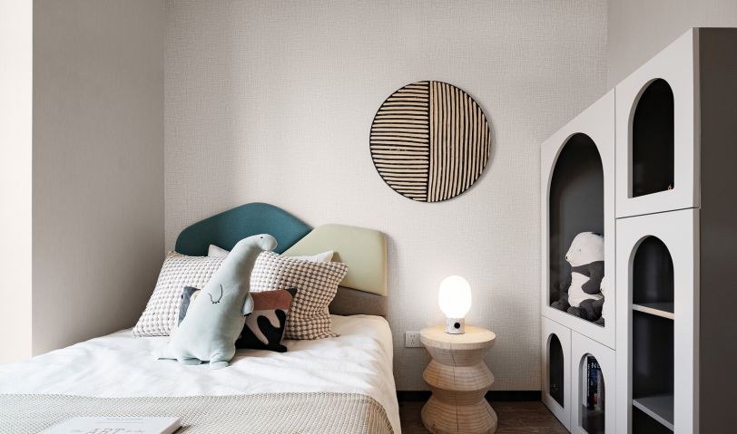 兒童房并不一味的填滿童真符號(hào),淺色系搭配少量拼接色塊,把控童趣的尺度,讓空間具備較長(zhǎng)的成長(zhǎng)范圍。