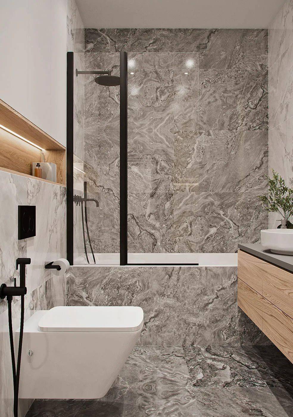 紋理豐富的瓷磚,讓衛(wèi)生間的層次更為立體,簡(jiǎn)致的木質(zhì)洗漱臺(tái),膚感收納柜,恬靜而清雅,同時(shí)增加了收納空間。