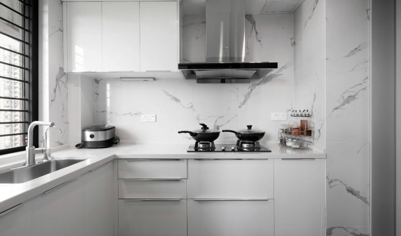 以白色為基調(diào),頂上簡化的石膏線造型,