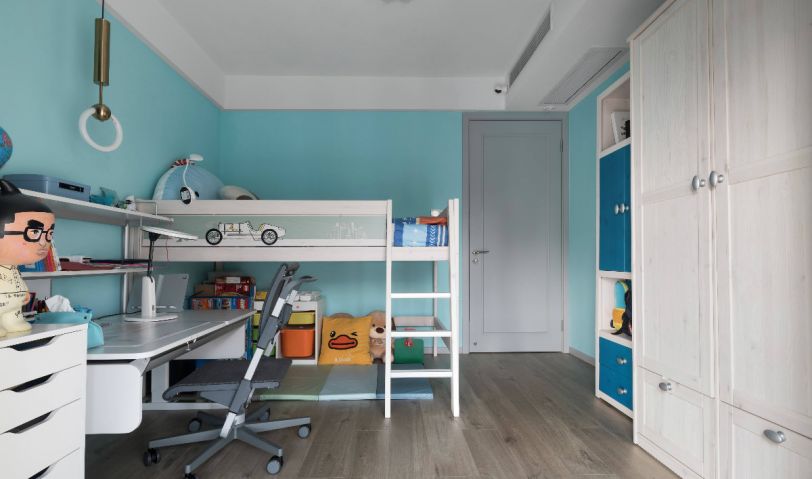 男孩的房間是淡藍色的墻面,