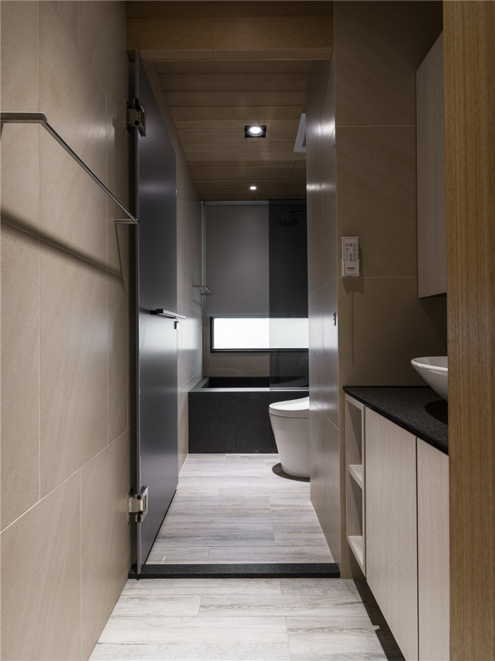 衛(wèi)生間使用香檜木封頂,小空間洗浴時(shí)時(shí)可呼吸天然香氛,小居宅不將就的洗浴空間,泡澡、淋浴、智能馬桶一應(yīng)俱全。