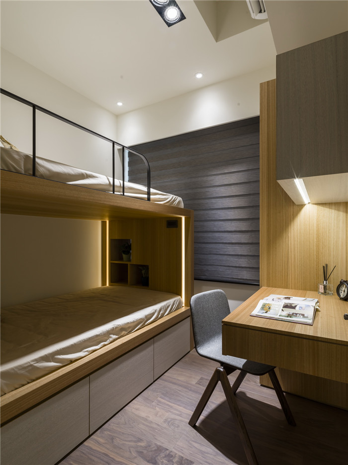 兒童房定制雙層床,老人幫忙照看孩子也有休息睡覺(jué)地方。