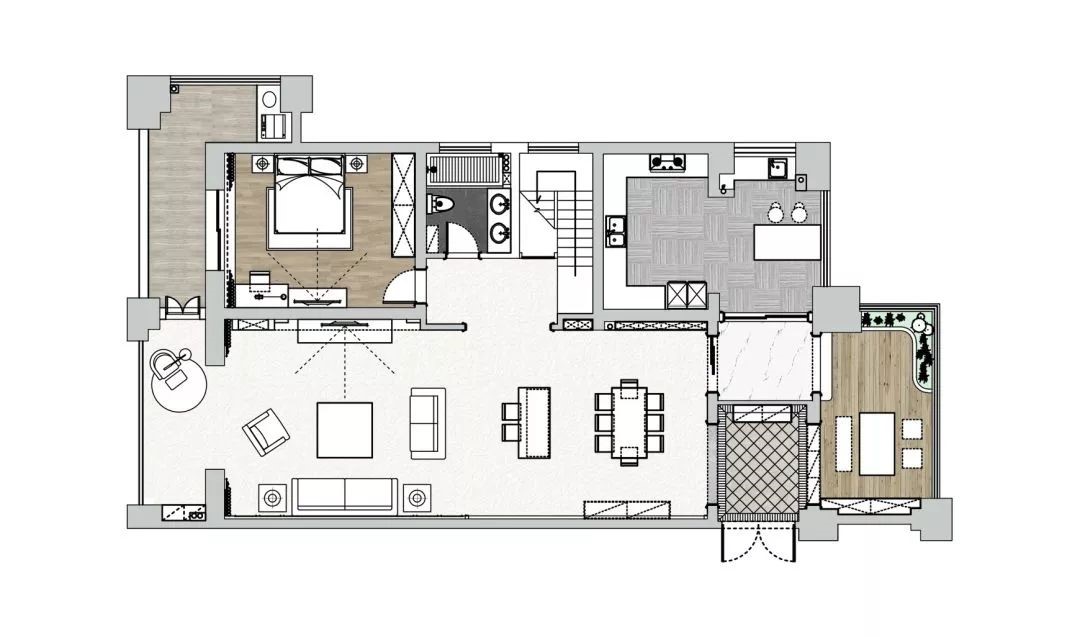 主臥集衛(wèi)生間、衣帽間與一體,寬敞的套房設(shè)計(jì),在合理的規(guī)劃下,用一種成熟而內(nèi)斂的方式,將臥室從整體空間中抽離出來,有著偏居一隅的寧靜。