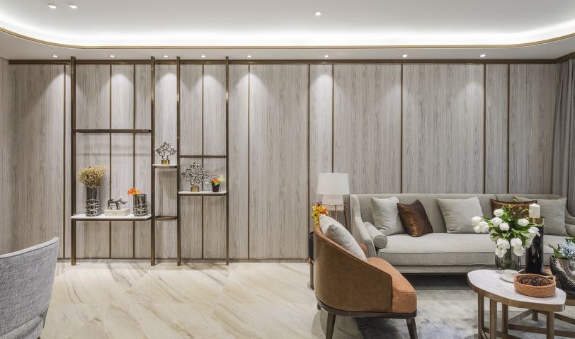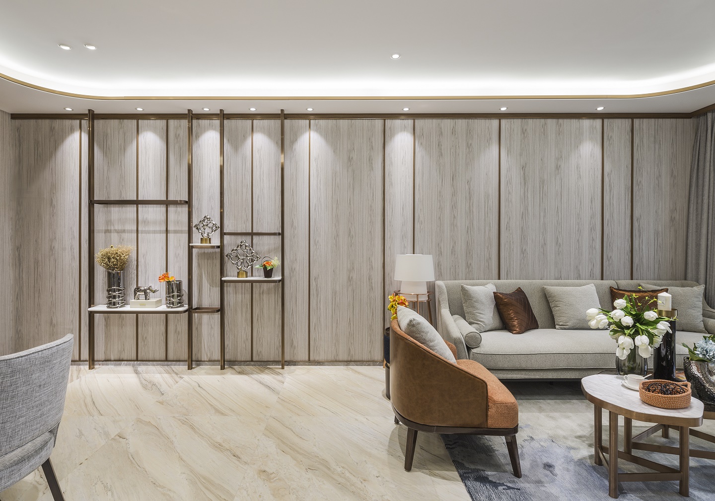 現(xiàn)代風(fēng)格的簡約利落基調(diào),空間上選用低調(diào)的芝麻灰與深沉的古銅色為主色,用典雅而不過度的裝飾,勾勒出現(xiàn)代雅奢生活的精致質(zhì)感。