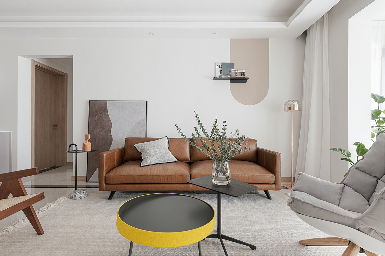 客廳與陽(yáng)臺(tái)聯(lián)動(dòng)互通,視覺(jué)的縱深感隨之而來(lái),空間因此擁有了良好的采光和通透性。