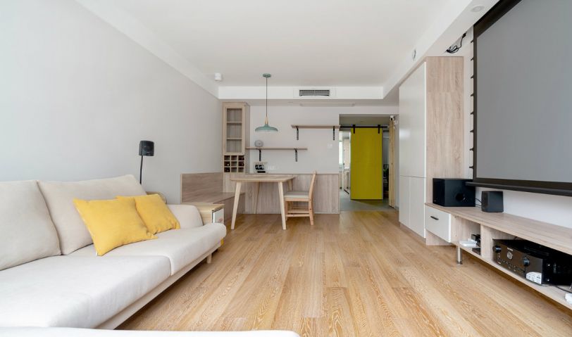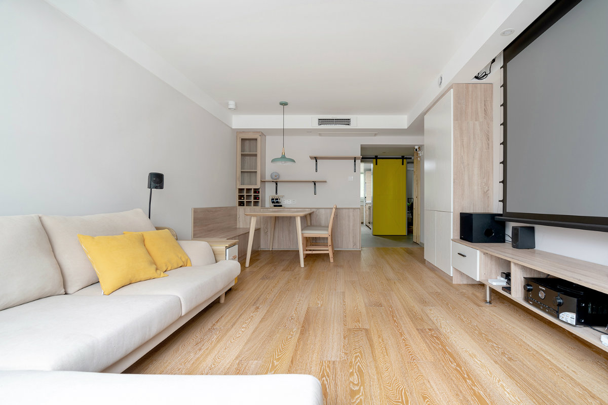 原木和亞麻的搭配是一個(gè)經(jīng)典,氛圍感十足。同時(shí)轉(zhuǎn)角沙發(fā)的利用也讓客廳的活動(dòng)空間變得更大,方便在客廳做一些運(yùn)動(dòng)和鍛煉。姜黃色的點(diǎn)綴,讓原本比較溫馨平淡的空間,多了幾分跳脫和活躍。