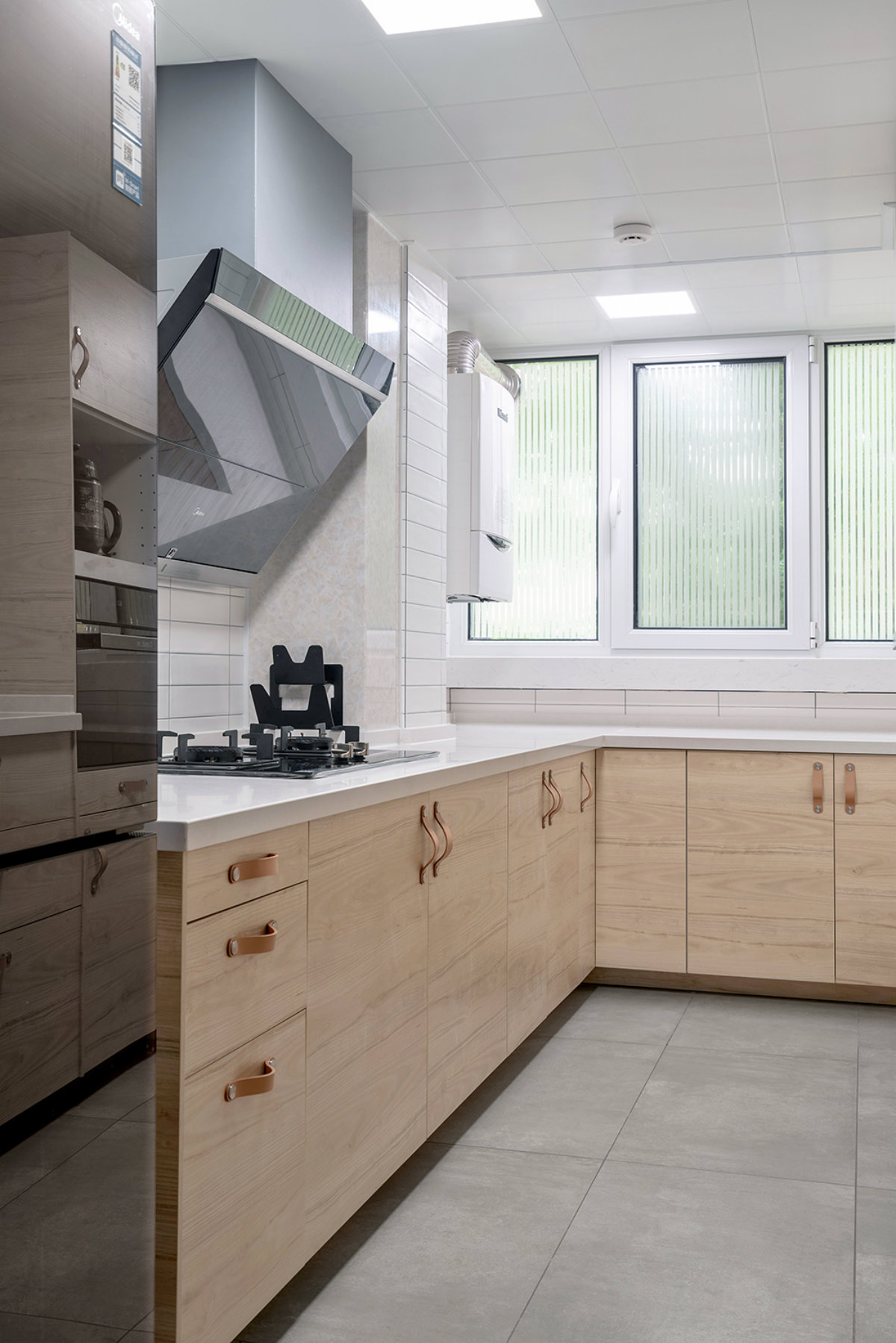 小白磚和木柜門搭配出來顏值是很高的,清新還顯得干凈??赡艽蠹乙捕甲⒁獾搅?,每個(gè)空間的窗戶玻璃上都呈條紋。因?yàn)檫@個(gè)是一層,所以小區(qū)過往的人可能會(huì)隨時(shí)看到家里的樣貌,這種情況會(huì)讓私密性就比較差。因此屋主就自己在某寶購買了這個(gè)透明條紋貼紙,即便白天不用拉窗簾,也不會(huì)擔(dān)心采光。