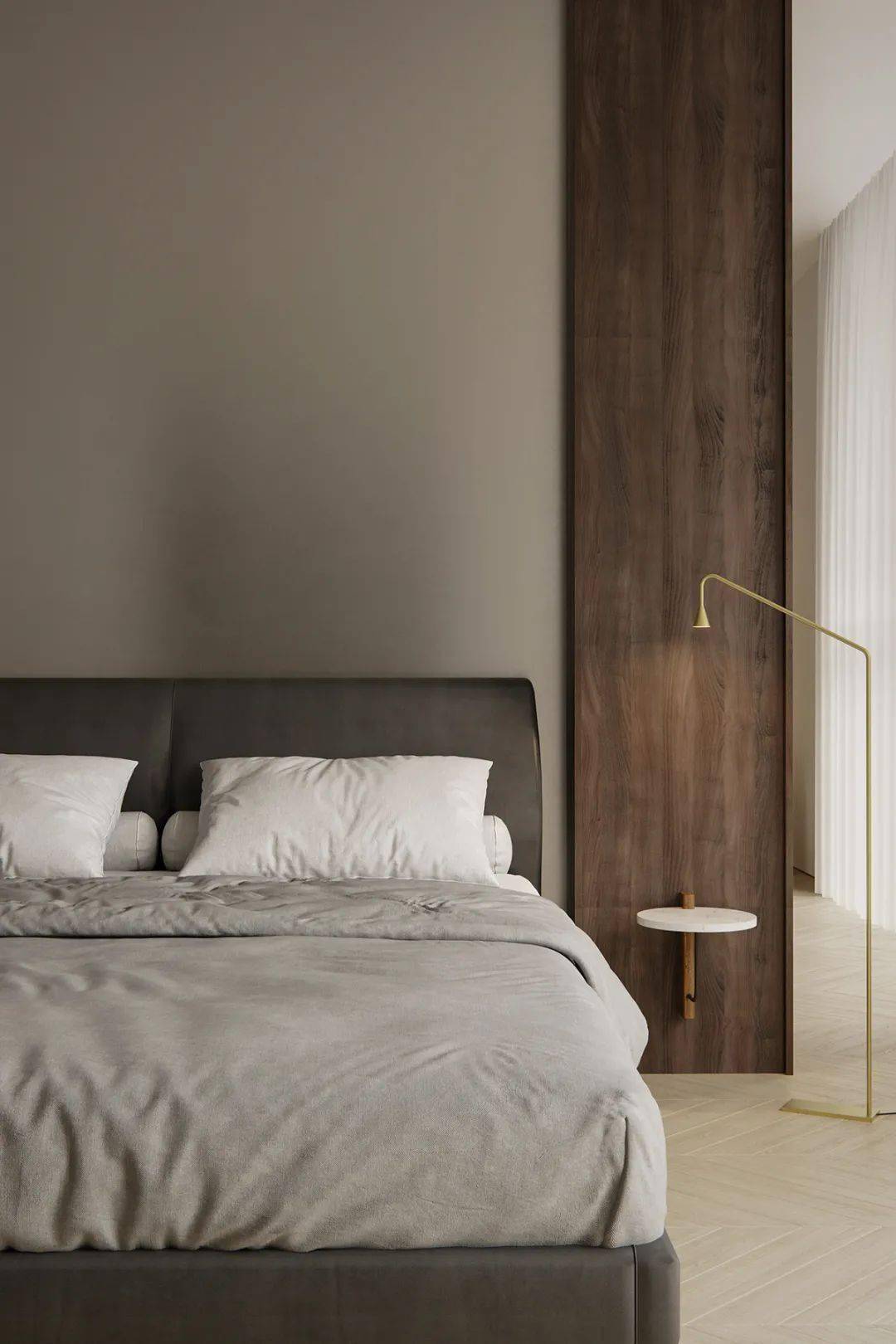 與金色落地?zé)簟⒑?jiǎn)易床頭柜一起