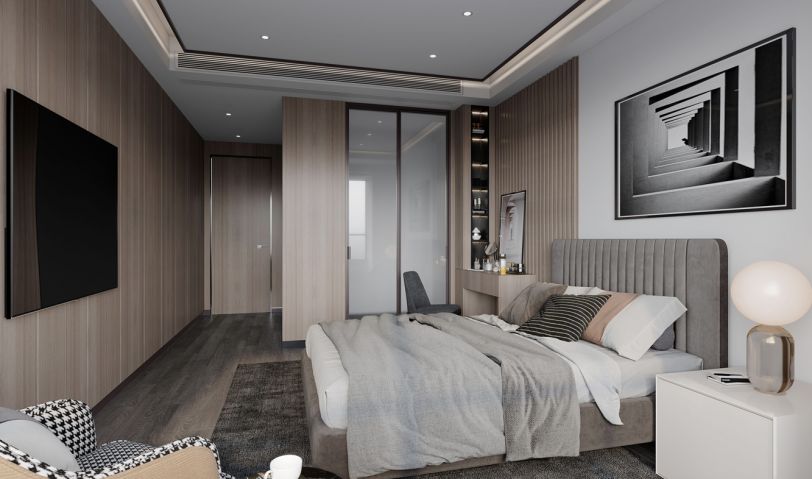 主臥室空間不大,放下大床再放成品衣柜比較擁擠,和業(yè)主溝通后我們把主衛(wèi)生間的空間改造成了衣帽間,既美觀也能解決收納問(wèn)題。