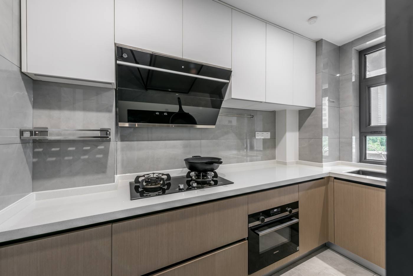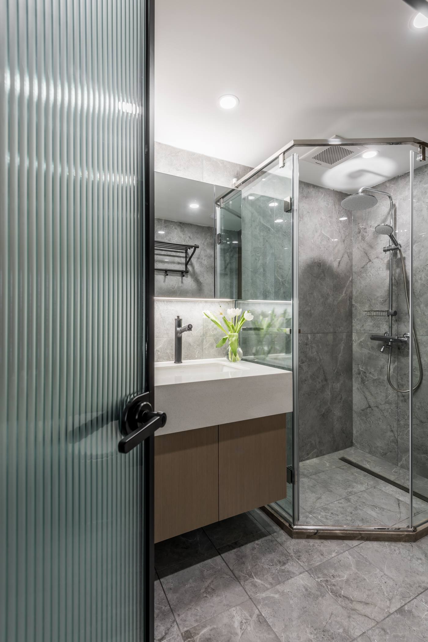 與公共區(qū)的黑色頂面,黑與白的完美交匯