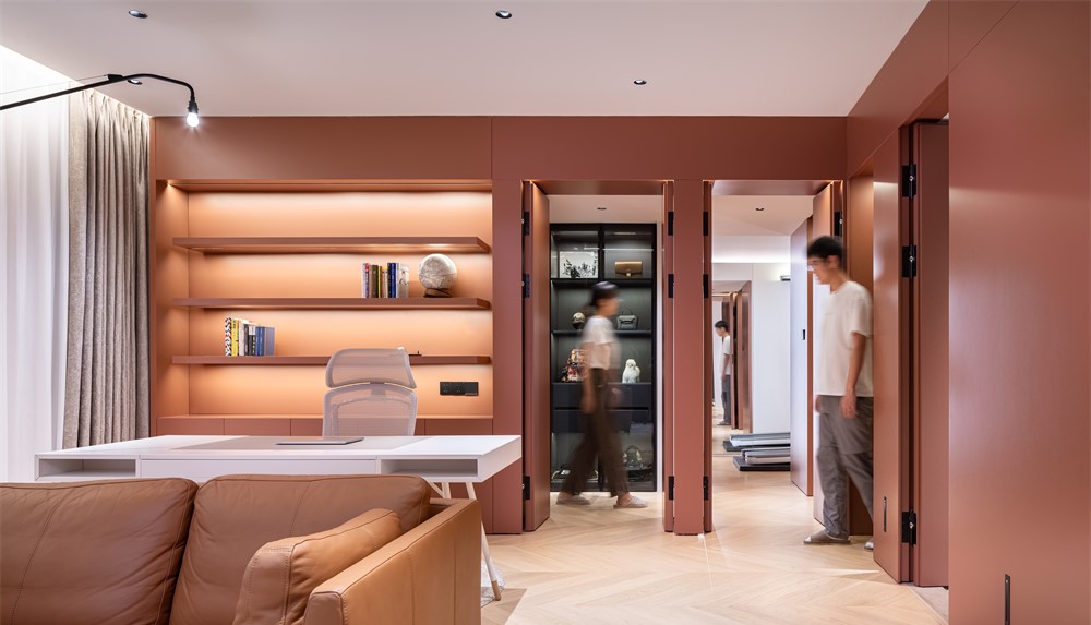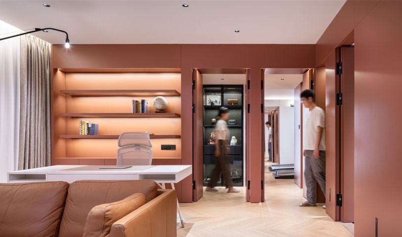 將原先封閉的書(shū)房與客廳打通,做成了開(kāi)放式,讓空間更加寬敞、通透。