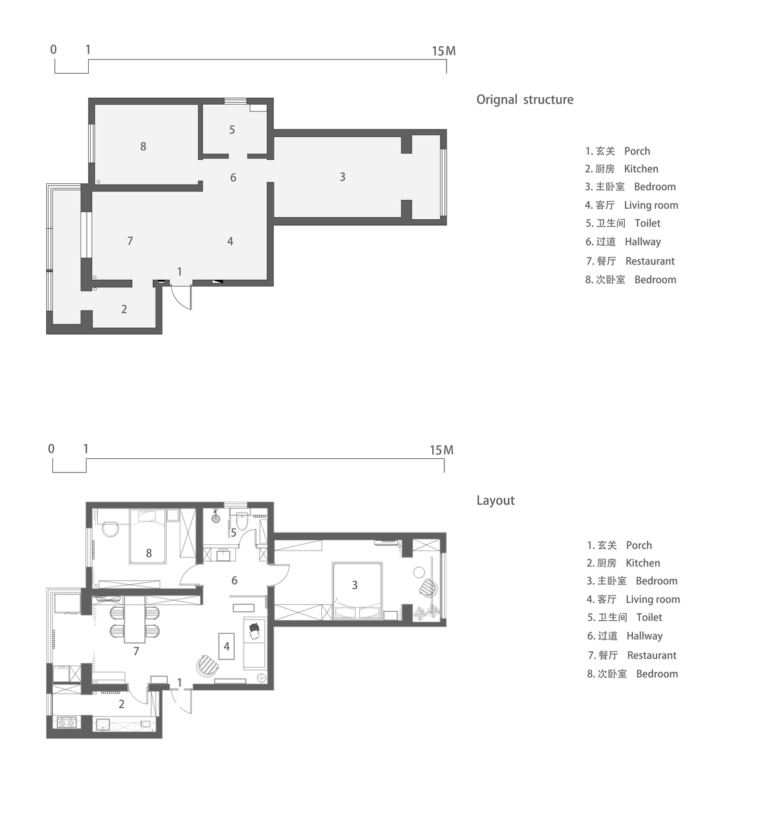 這個(gè)設(shè)計(jì)的靈感來源于這座老式住宅區(qū),實(shí)地考察的當(dāng)天,在小區(qū)閑逛的時(shí)候偶然間看到了一件八十年代的老家具,是個(gè)帶有海棠花玻璃的小立柜,陽光透過海棠花造型的壓花玻璃,呈現(xiàn)一種若隱若現(xiàn)的迷離圖像,像油畫般真實(shí)而又模糊,那是一種虛虛實(shí)實(shí)的回憶。便想要打造一座遺世獨(dú)立的精致小屋,不懼風(fēng)霜雷雨,像一朵海棠花一般,自在開放。