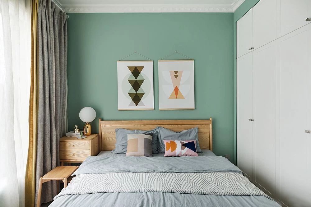 主臥空間延續(xù)整體的設(shè)計(jì)風(fēng)格,清新又時(shí)尚。