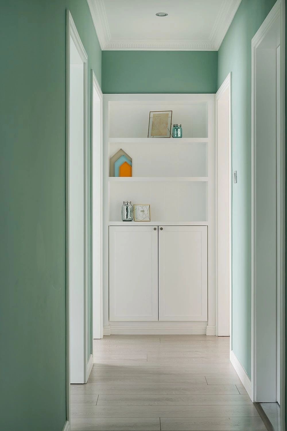 過道的展示柜讓空間不再單調(diào),裝飾性與實(shí)用性兼得