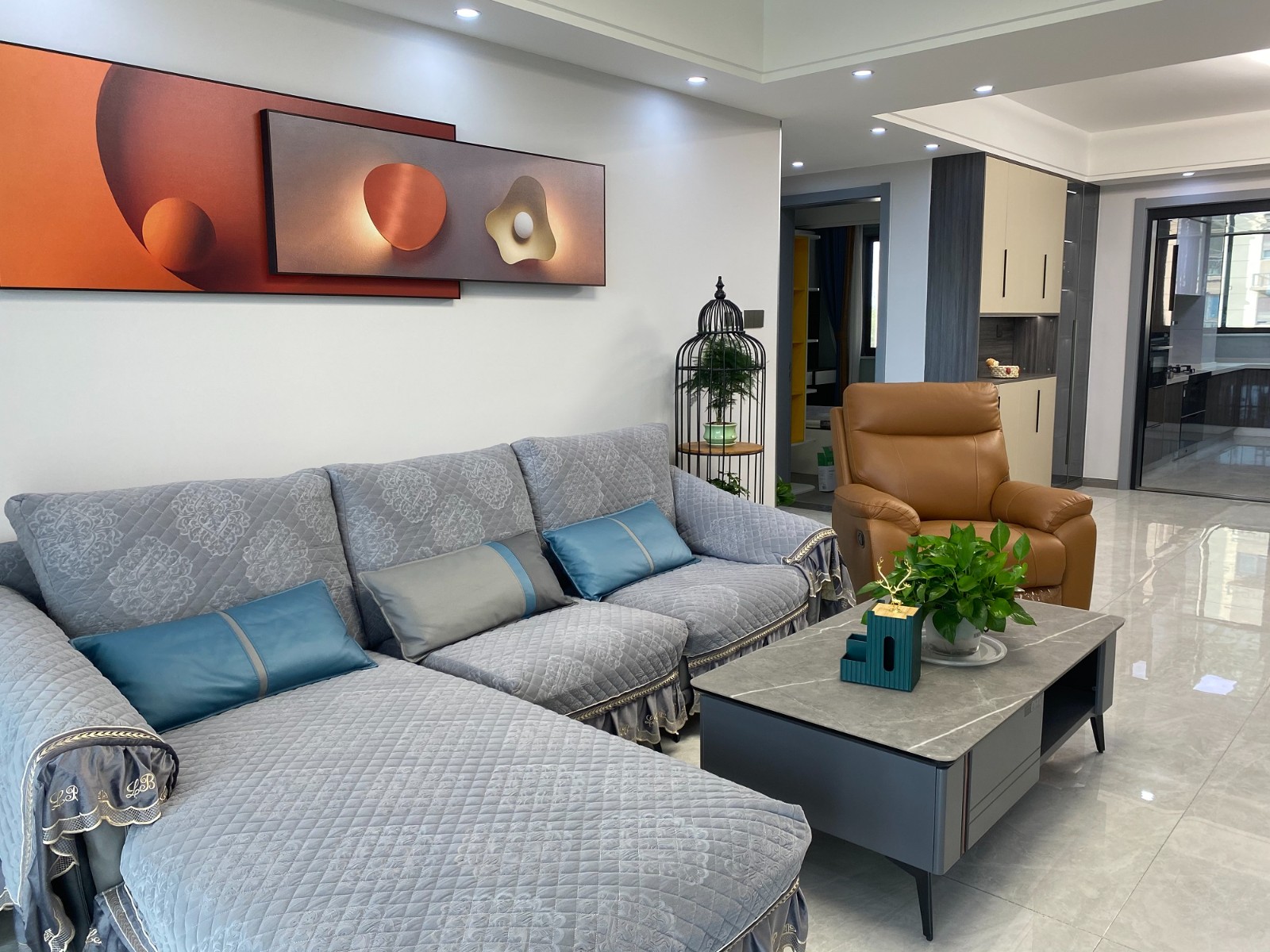 設(shè)計師從設(shè)計上結(jié)合業(yè)主的喜好,在現(xiàn)代風格的基礎(chǔ)上,將業(yè)主的生活習慣融入其中,整體色系明亮柔和,打造簡約又不失質(zhì)感的家