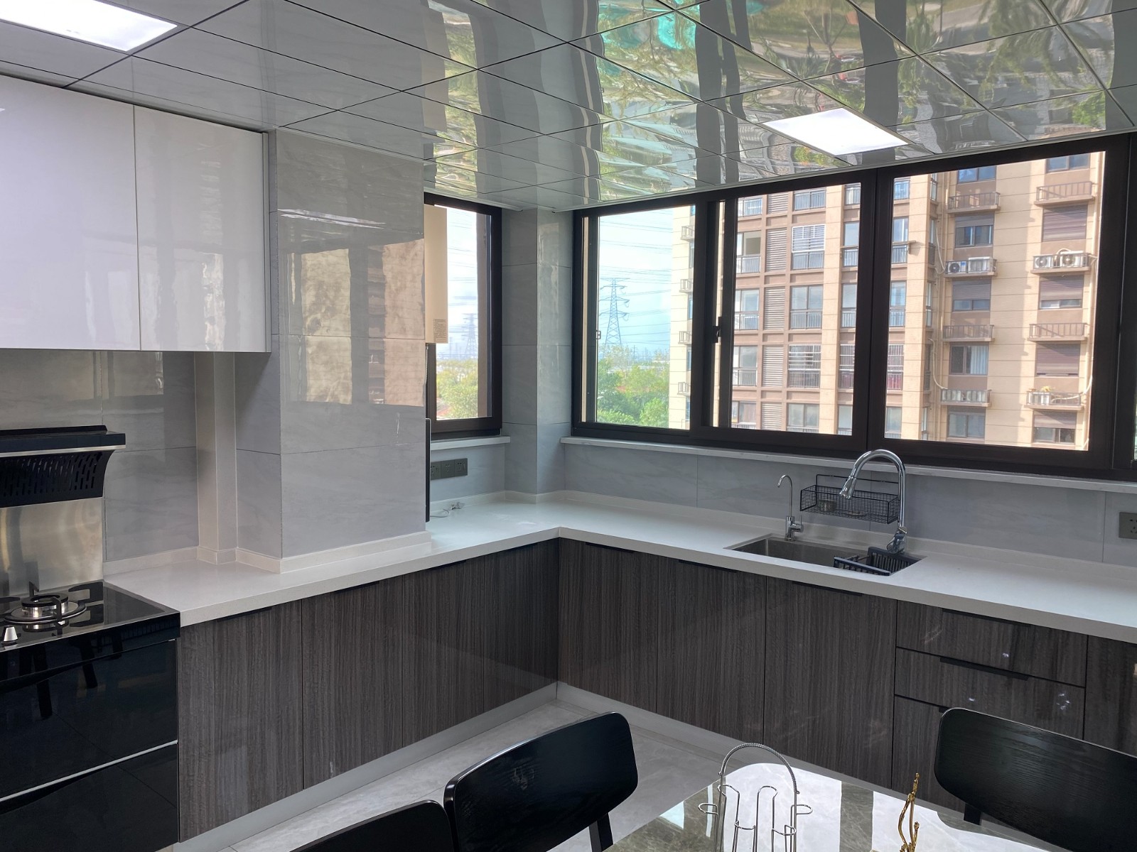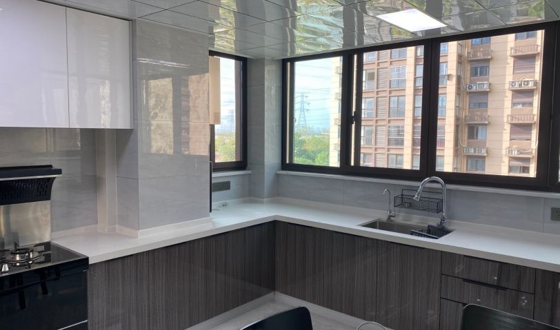 廚房設(shè)計了L型臺面,實際使用時更加開闊便利