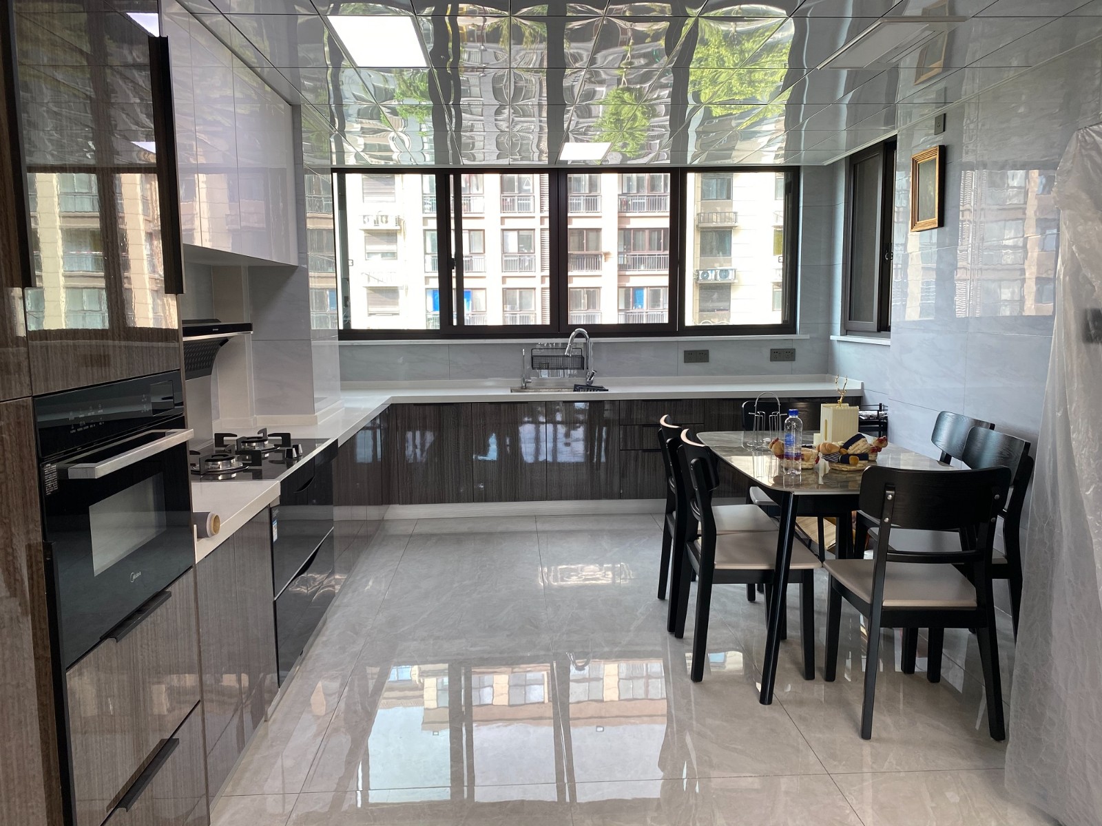 廚房與餐廳使用共同空間,這也是比較少見的設(shè)計,因為業(yè)主家廚房的空間是能夠容納下餐桌椅以及更多的活動空間,不需要走出廚房就能吃到熱菜熱飯,也是一種幸福感