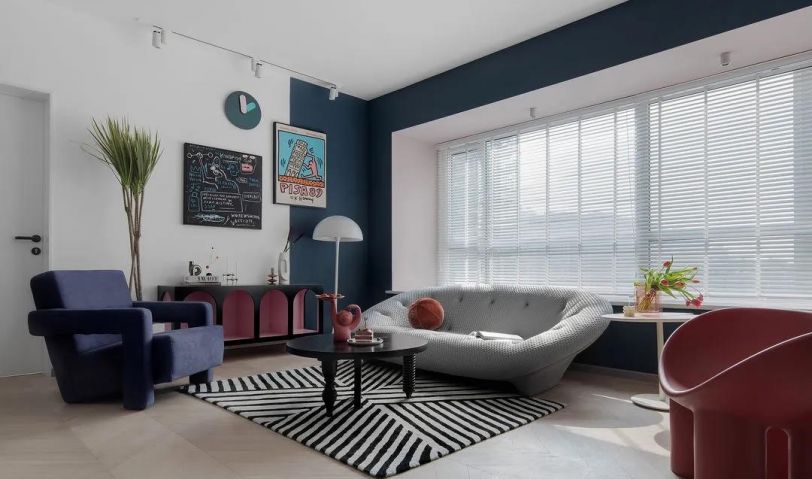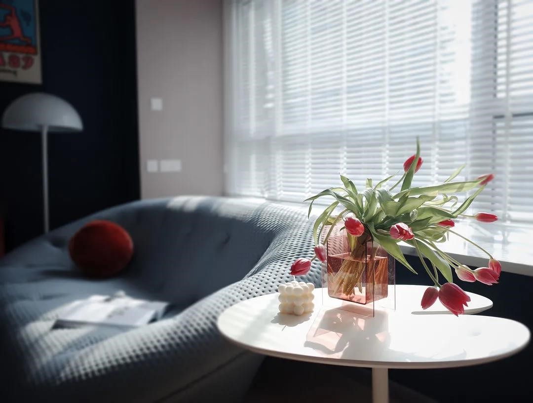 飄窗選用百葉簾,利落干凈,可根據(jù)需求靈活調(diào)節(jié)光線,沙發(fā)與裝飾柜均為成品,空間靈活可變