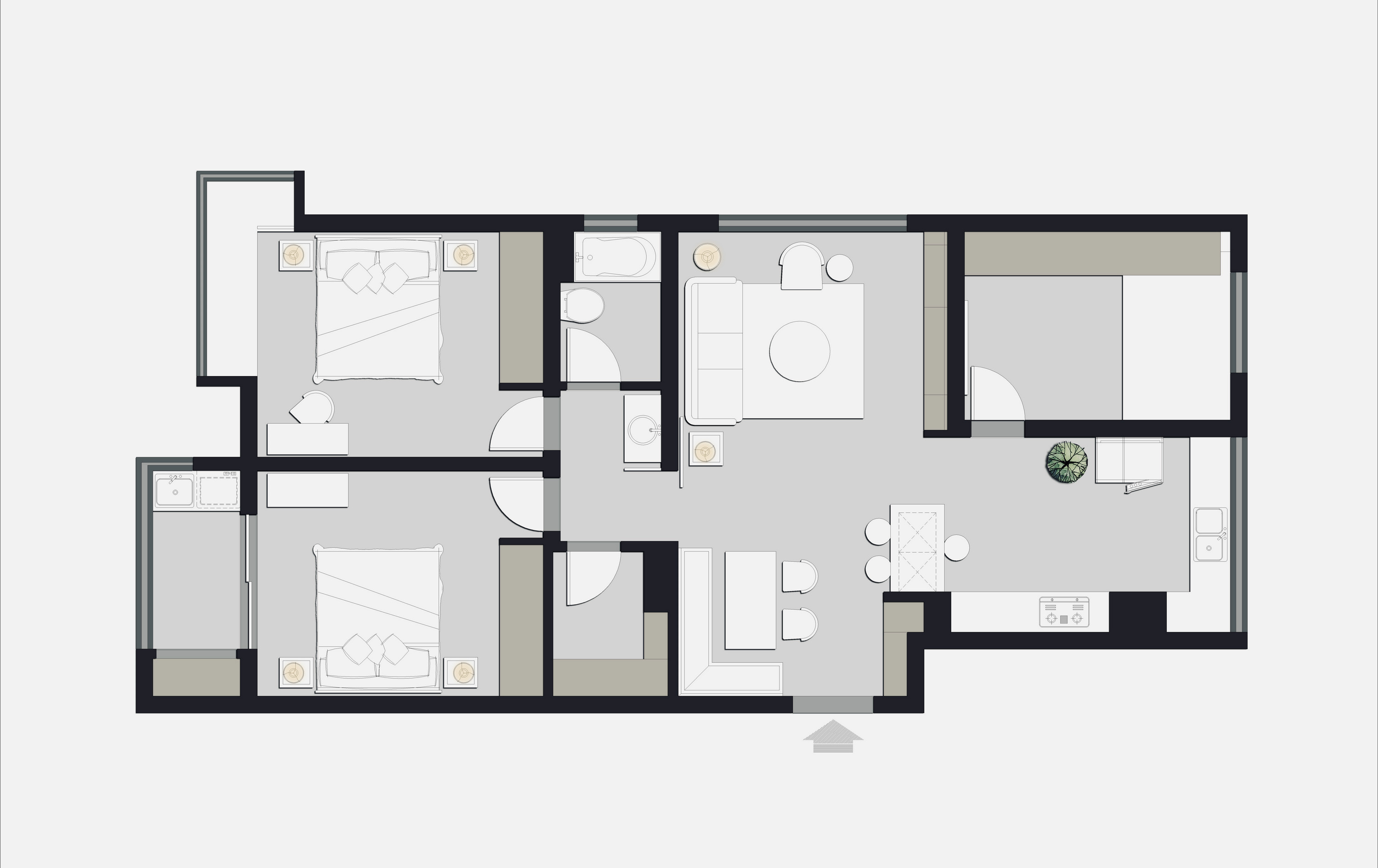 案例名稱 都市繁華里的心靈居宅 戶型 三居室 案例面積 90㎡
