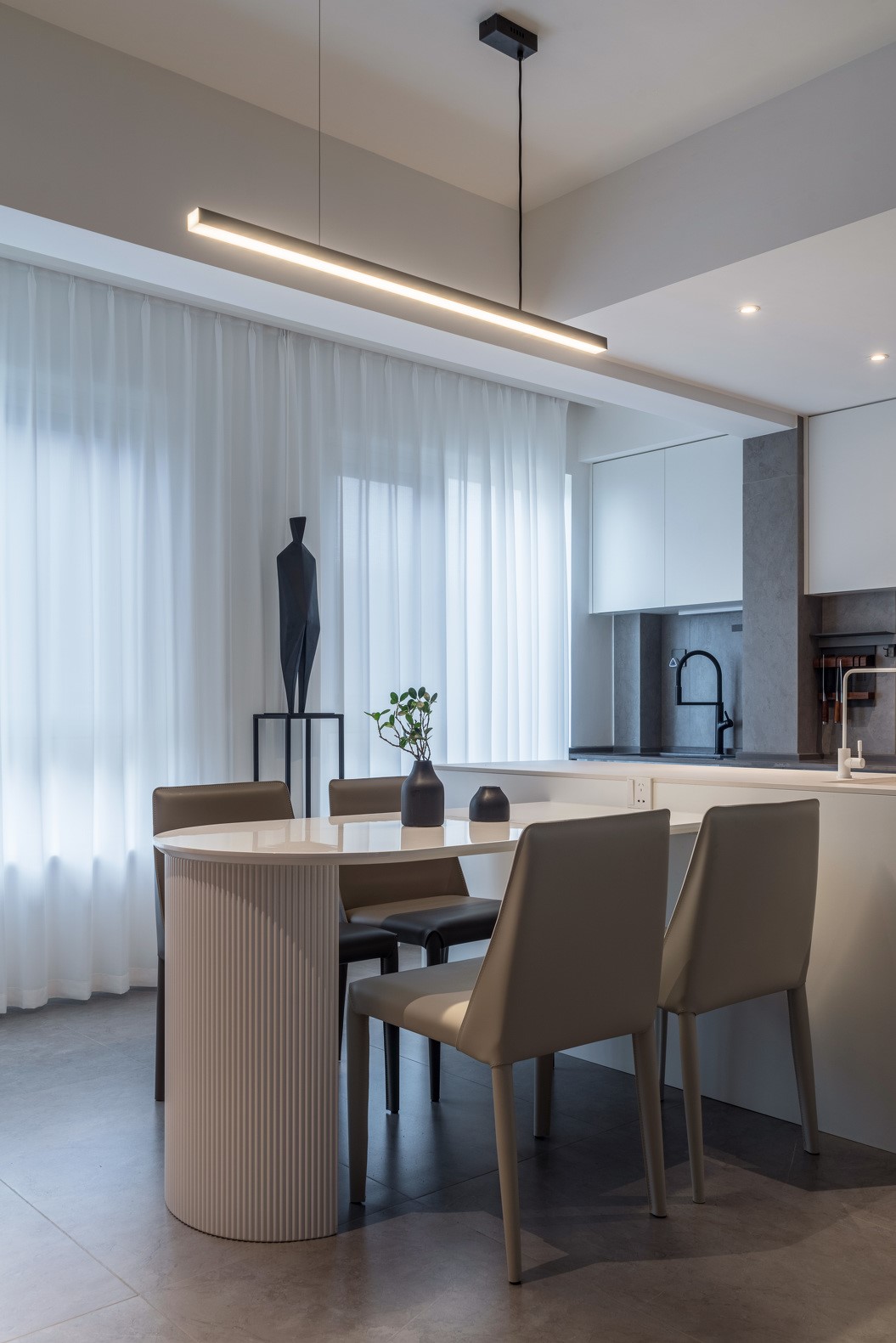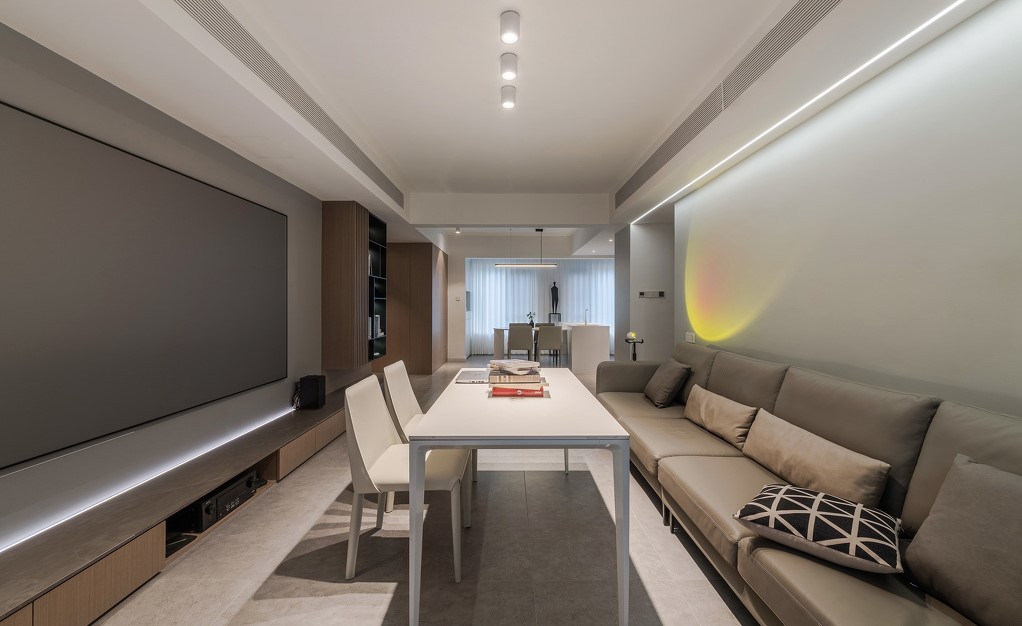 1客廳并非傳統(tǒng)意義上的客廳,它是多功能的一個集合。平時主要是工作的空間,兼具觀影、閱讀、聚會。聚餐等等多重的功能。2小小的房子有一個大大的餐廚空間。
