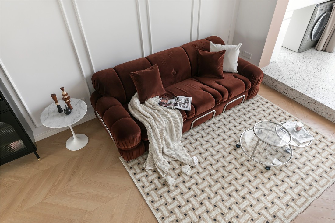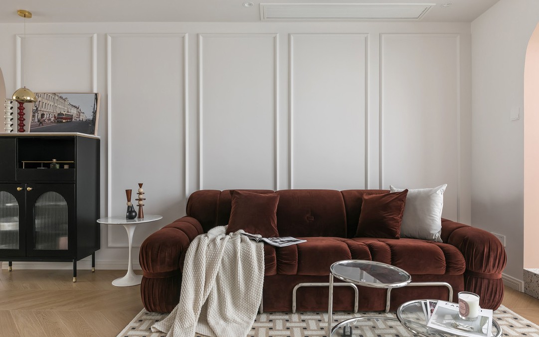石膏線造型搭配酒紅色沙發(fā),這是女主人的最愛