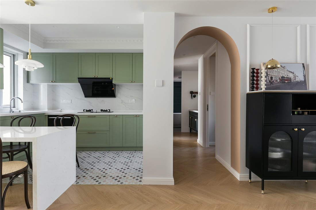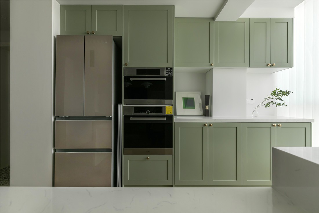 設(shè)計從傳統(tǒng)的廚房結(jié)構(gòu)里跳脫出來,將嵌入式家電與櫥柜結(jié)合