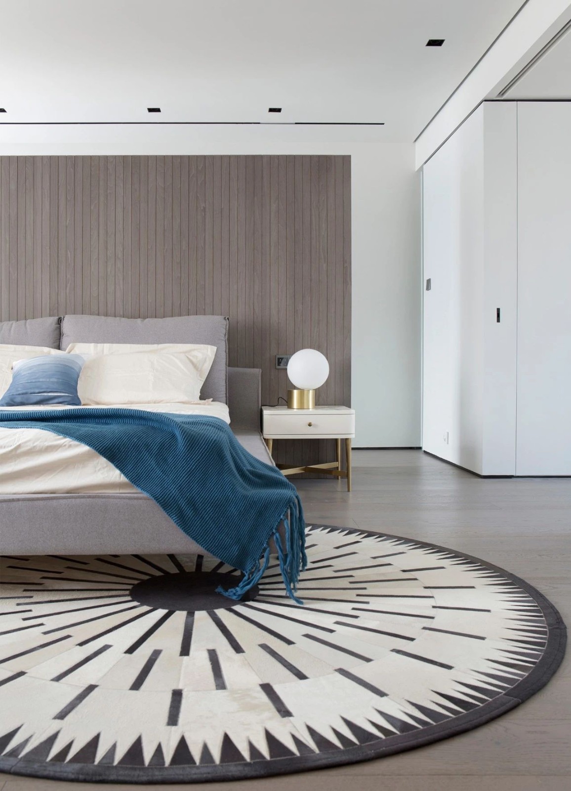 黑白圖案的圓形地毯使整個空間安靜而不失溫馨。