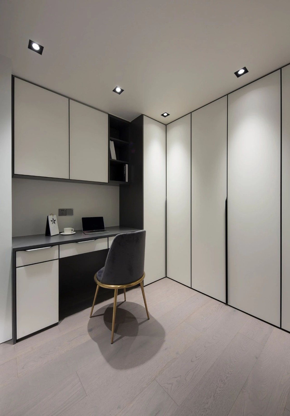 主臥亦將自然光納入室內(nèi),體驗(yàn)一份居家時光的寧靜,足不出戶,也能沐浴溫暖的陽光。 書房和臥室相連,串聯(lián)起空間動線,滿足實(shí)際需求。純粹的黑白營造理性的質(zhì)感,透露出優(yōu)雅與迷人的氣質(zhì),空間排除一切冗余的線條,力求大氣沉穩(wěn)