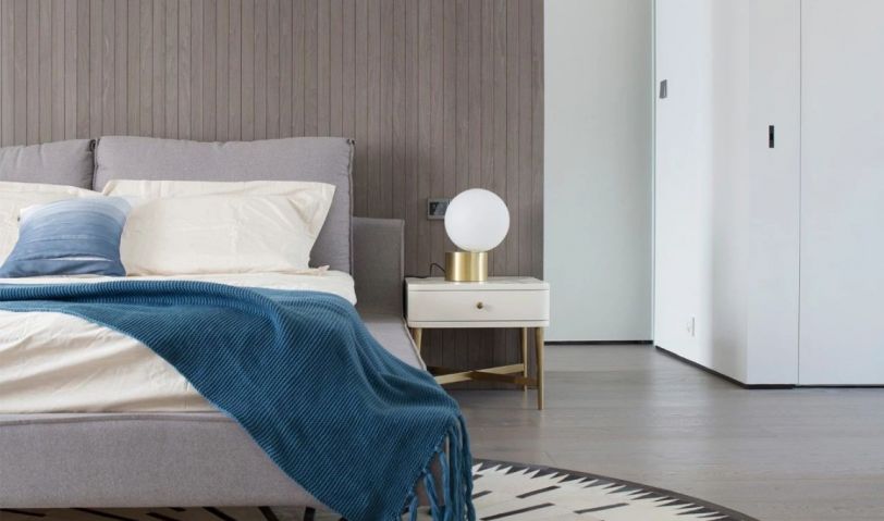 將衣帽間置于床背景板之后,并設(shè)計了梳妝臺區(qū)域,增大臥室的功能,滿足收納需求的同時,將實(shí)用性發(fā)揮到極致。白色搭配孔雀藍(lán)的色調(diào),給主人帶來愉悅的更衣和梳妝體驗(yàn)