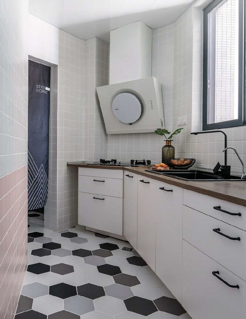白色額墻面磚搭配白色的櫥柜