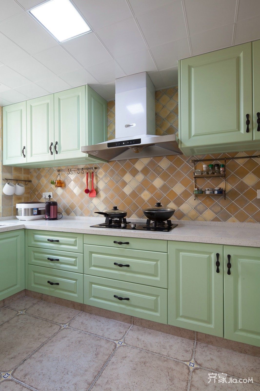客戶指定要模壓櫥柜,因?yàn)榫€條感很充足廚房間面積也非常開(kāi)闊。