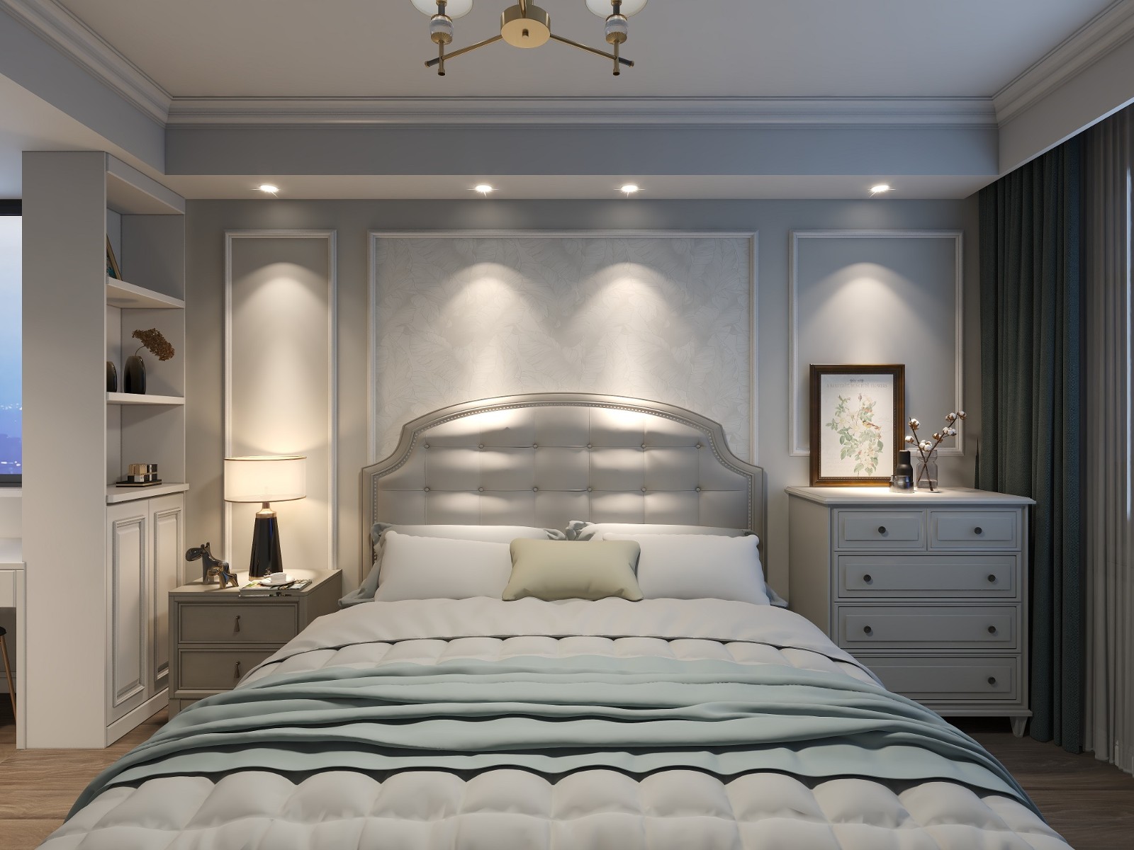 主臥室空間整體沿用單色基調(diào),更能凸顯空間感