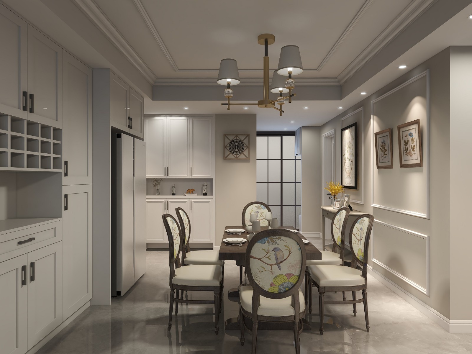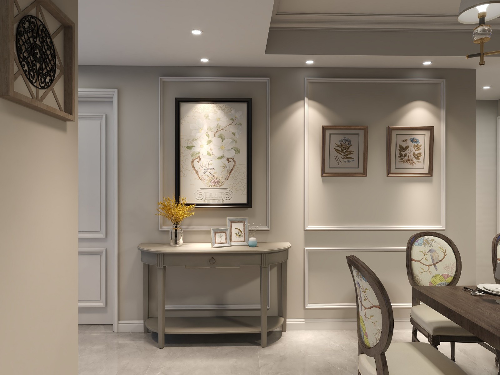 過道的端景,是客人對這個家印象的開始,美式的玄關(guān)柜和簡約的藝術(shù)畫,既能突出自己的個性,又不張揚是主人對這個家的完美表達(dá)