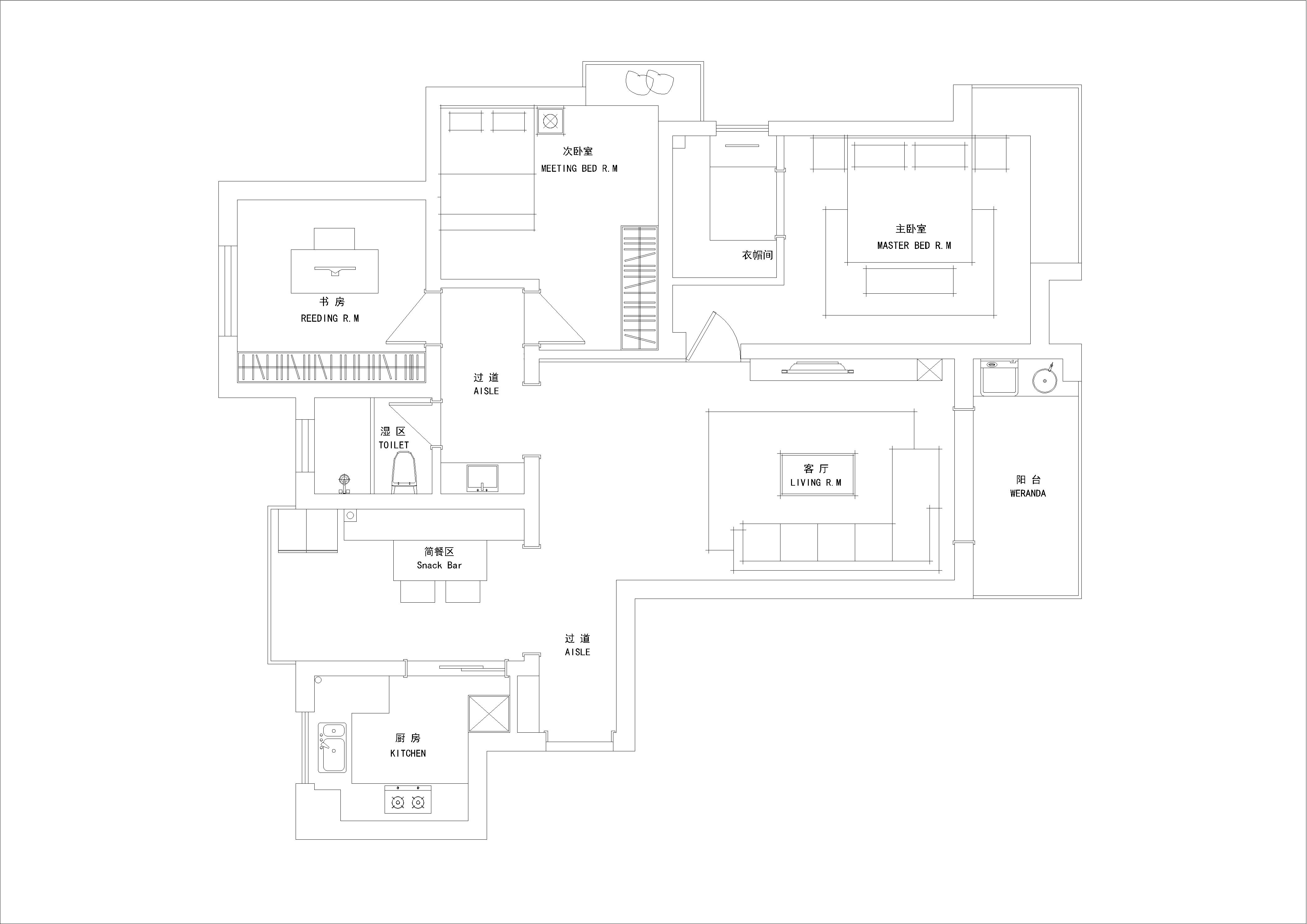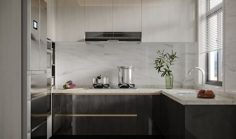 開(kāi)放式廚房將元、色彩、照明簡(jiǎn)化到最少,提高質(zhì)感要求