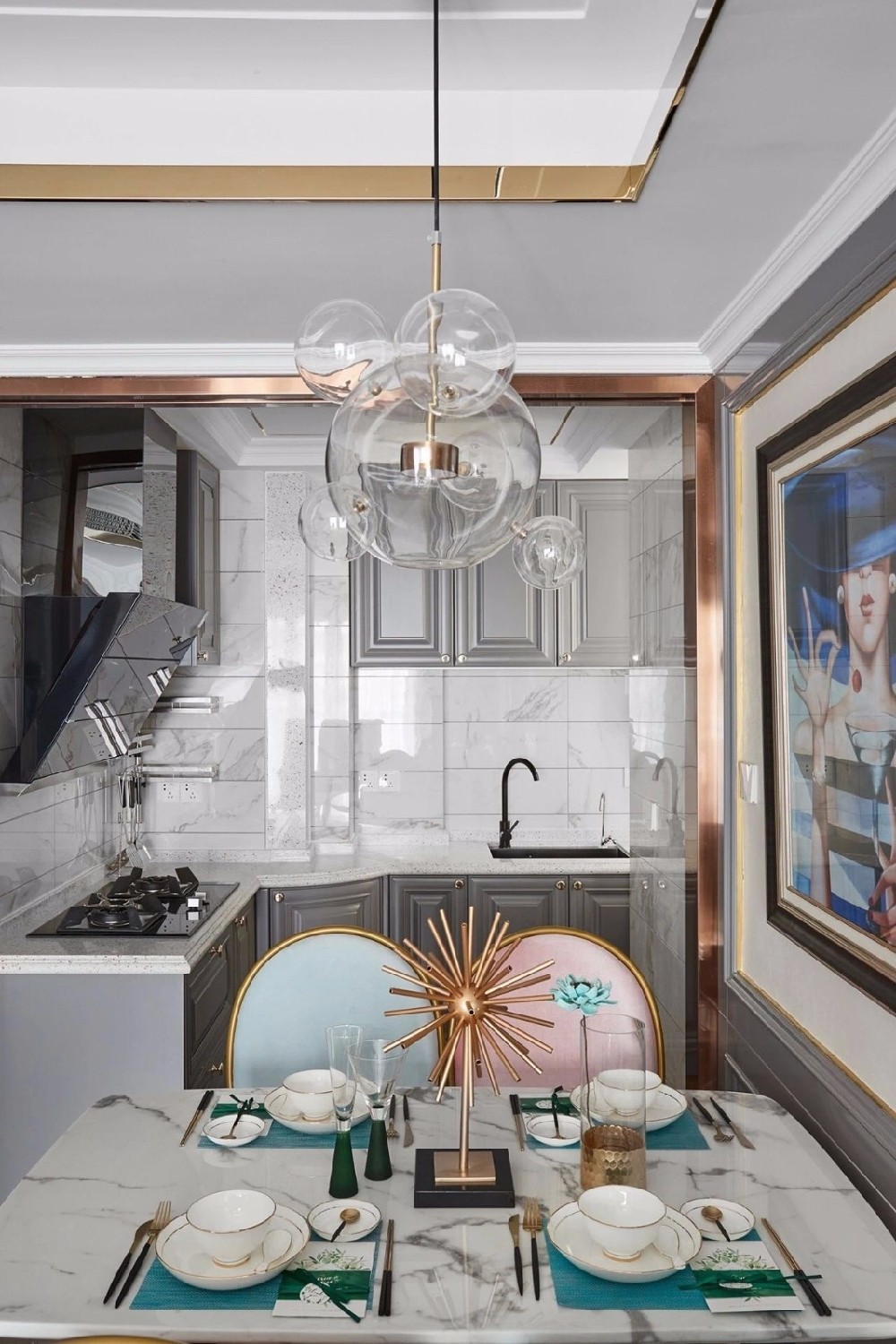 廚房為敞開式廚房,簡單的墻磚顏色,顯得整體感更充足。