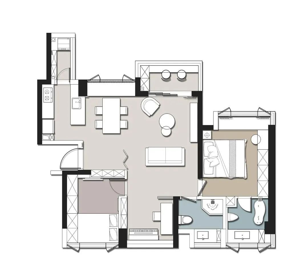 小姐姐個人不拘泥某一種特定風格,比較喜歡簡約、耐看的設計。所以整體設計以灰白調為主,金色點綴來賦予空間節(jié)奏與輕奢感,簡單、素雅又不失質感,并且溫柔而又明亮。