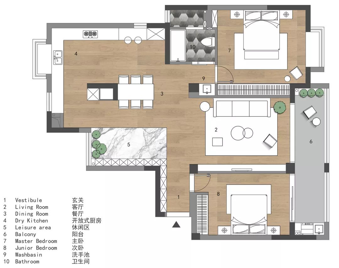 今天分享的是一套建筑面積118平的現代簡約風二居室案例,簡潔分明的硬裝基礎和開闊的布局,都讓這個家顯得格外的簡約大方。在餐廳的邊上還用大理石做了一個休閑地臺,更是大氣十足。