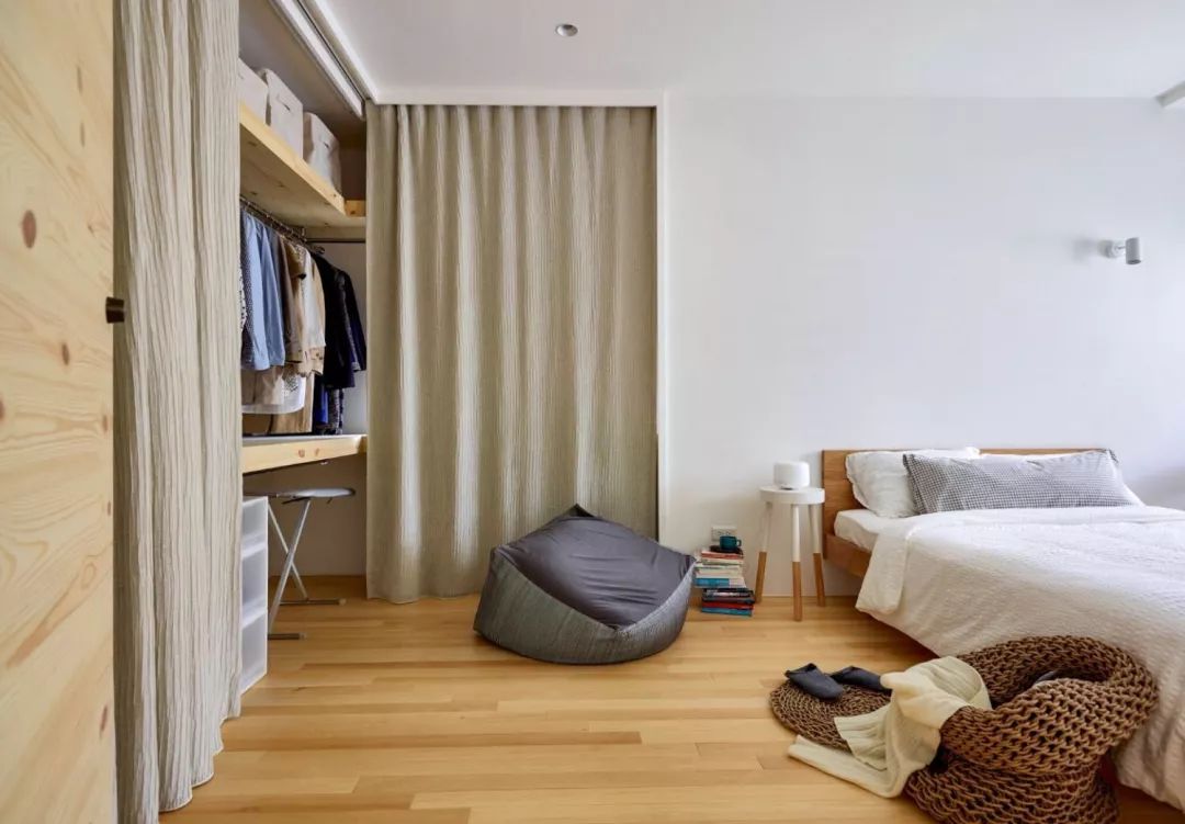 臥室的設計同樣非常素雅,整面床頭背景墻都空著沒做裝飾,靠窗的位置被利用起來做了書桌,方便屋主在家辦公
