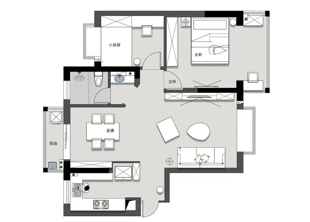 | 案例名稱 | 85㎡現(xiàn)代簡約2室2廳,勾勒會呼吸的自由空間! | 戶型 | 兩居室 | 案例面積 | 85㎡ |