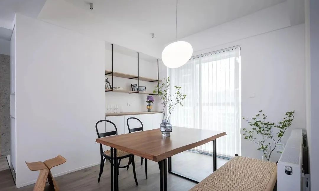 干區(qū)門洞斜向處理,增大過道空間,拱門元素的使用帶來趣味性。順應(yīng)位居動線中心的長型餐區(qū),擺放長形方桌,連結(jié)了公共區(qū)域互動