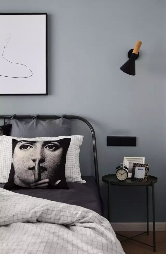 主臥室為冷色調(diào),在家具的選擇上選用了宜家性價比很高的科帕達鐵藝床。窗簾外是陽臺,沒事的時候就可以去發(fā)發(fā)呆。