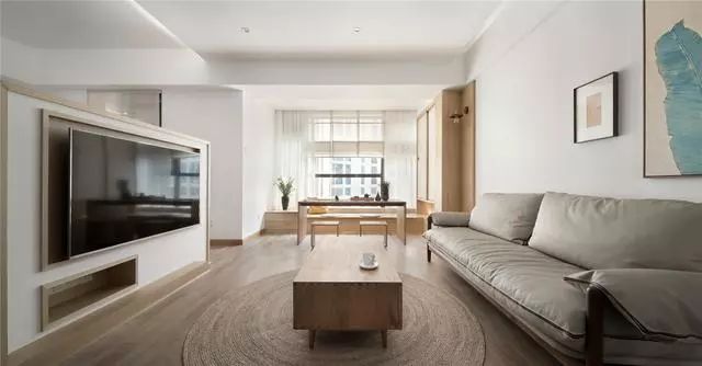 客廳設計以簡約為主,沒有吊頂和吊燈,簡單開闊的客廳給人一種放松感。在這個空間中增加了木質(zhì),藤編和皮革等具有溫暖質(zhì)感的家具,讓簡約有了溫度,低飽和度的色系也與日式的素雅不謀而合。