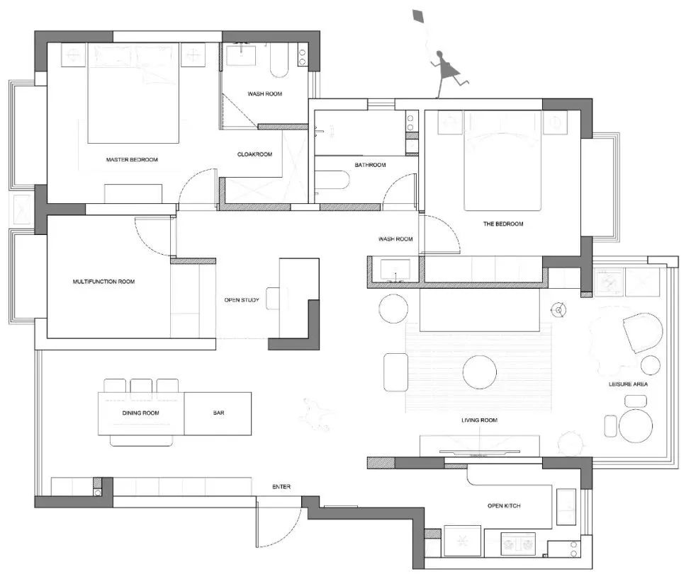以書房為中心的回字形動線布局,在提供靈活自由的動線的同時,也給屋主的愛好預(yù)留了更多搭配組合的空間